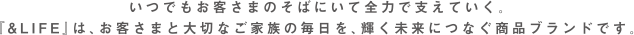 いつでもお客さまのそばにいて全力で支えていく。「&LIFE」は、お客さまと大切なご家族の毎日を、輝く未来につなぐ商品ブランドです。