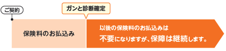 ガン給付責任開始期以後に初めてガン(上皮内ガンを含む)と診断確定されたとき、保障はそのままで以後の保険料のお払込みは不要になります。