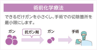 多剤併用療法とは、それぞれの薬の効能の相乗効果を狙うとともに、副作用を減らすことを目的としています。 - ● 手術や放射線療法の前にできるだけガンを小さくすることを目的として抗ガン剤を用いることもあります。