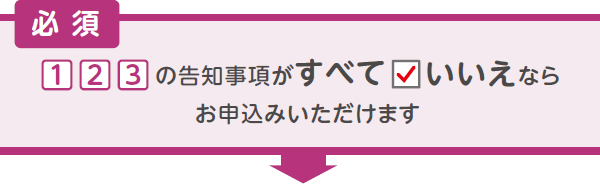 【必須】1・2・3の告知事項がすべて「いいえ」ならお申込みいただけます