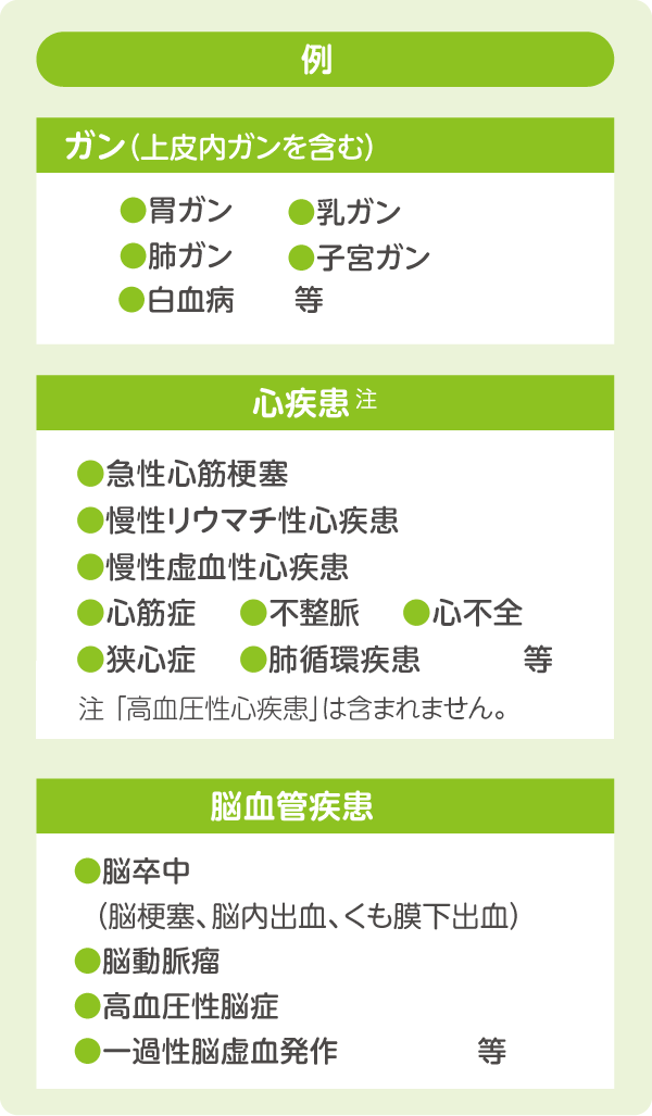 対象となる三大疾病の範囲