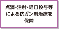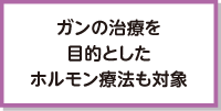 ガンの治療として一般的な、手術・放射線治療・抗ガン剤(点滴・注射のほか経口投与によるものを含みます)治療をはじめとして、ホルモン剤を用いたホルモン療法・免疫療法・緩和療法等で通院された場合も保障します。