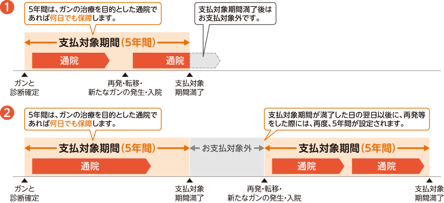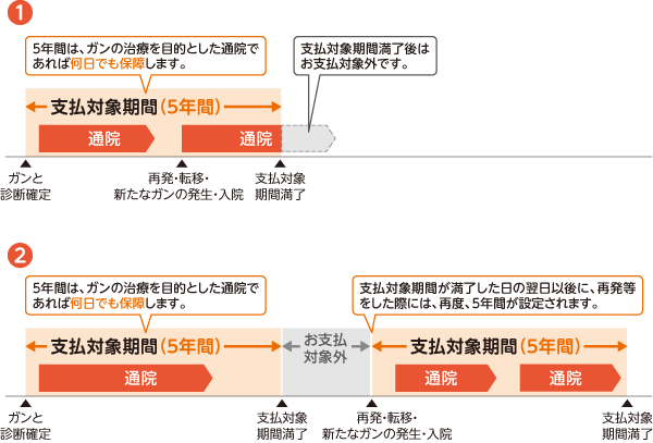- 注 最終の支払対象期間が満了した日の翌日にガンで継続入院中の場合、その日に入院を開始したものとみなします。