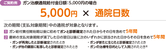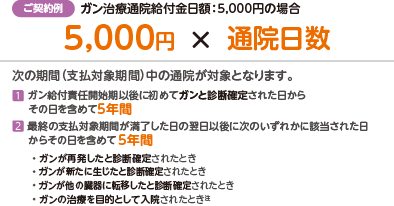 ガン(上皮内ガンを含む)の治療を目的として支払対象期間中に通院されたときお受け取りいただけます。