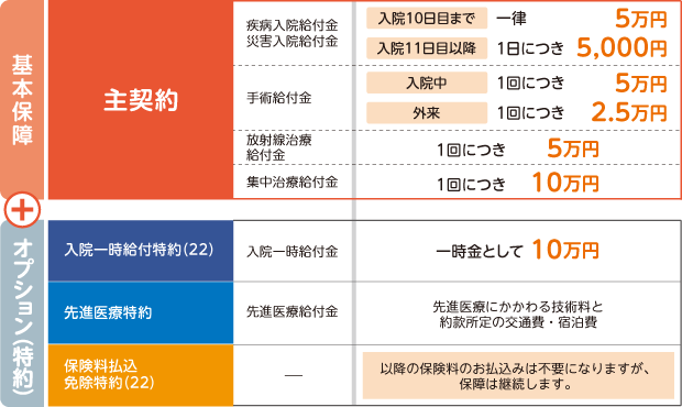 - ※このページの特約名称は「(無解約返戻金型)」を省略して記載しています。(保険料払込免除特約(22)を除く)