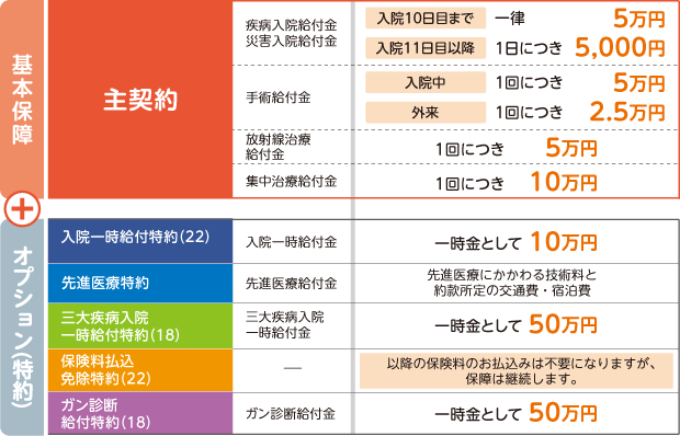 | 主契約 | ●疾病入院給付金 | 5,000円×28日分 | 14万円 |