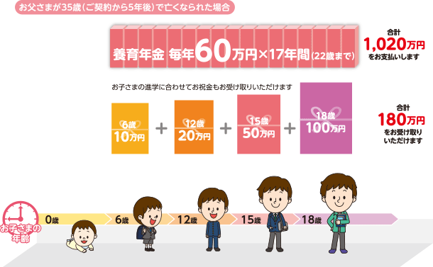 ご契約者が万一死亡された場合は、養育年金をお支払いします