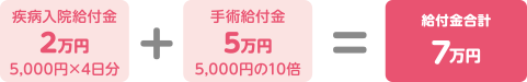 お子さまが虫垂炎(盲腸)で手術(虫垂切除術)を受けて4日間入院された後、無事退院された場合は、入院給付金や手術給付金をお受け取りいただけます。
