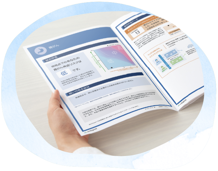 本サービスは、現在のがんリスクを統計的に判定するものであり、疾病の罹患可能性の提示や診断等の医学的判断をするものではありません。