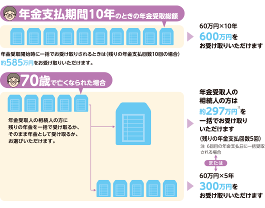 確定年金の場合、受取人の相続人の方が引き続き年金をお受け取りいただけます。