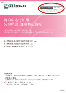 特約中途付加やご契約の更新を検討中のお客さまは、特約中途付加予定日・更新予定日の「ご契約のしおり・約款」を確認ください。